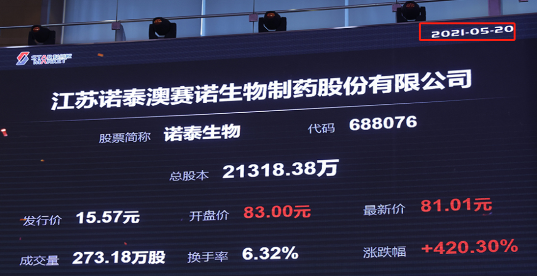 2021年5月20日,一个好日子,公司完成科创板上市敲钟,成为多肽药物领域行业龙头上市公司之一。