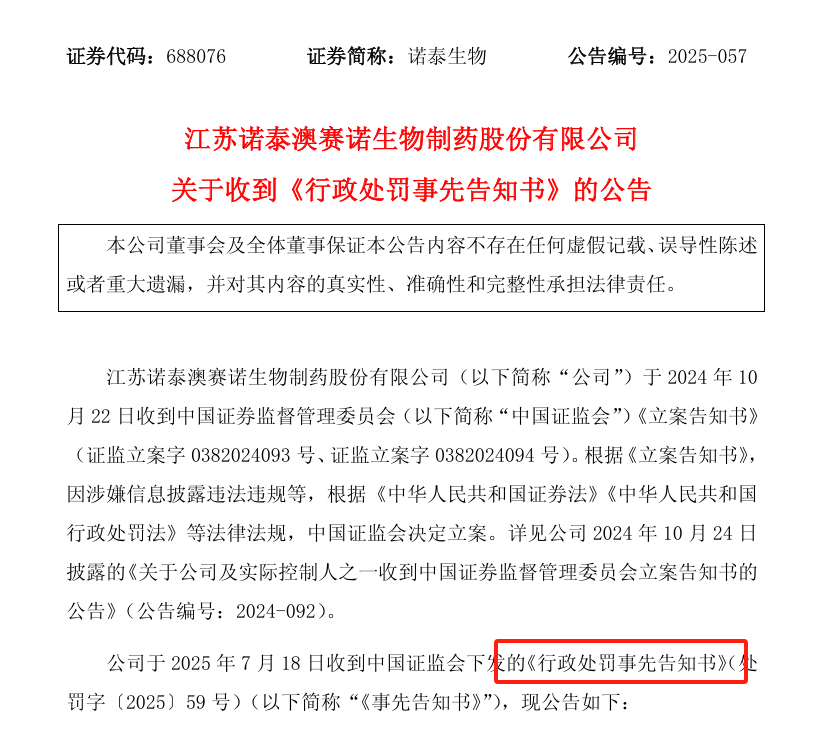 上市公司累计就虚增了3000万元营收粤友优配,最终公司+高管被合计罚款了7620万元,这数字一对比,听着就有点匪夷所思。7月18日晚间,科创板上市公司诺泰生物(维权)公告收到证监会的《行政处罚事先告知书》。