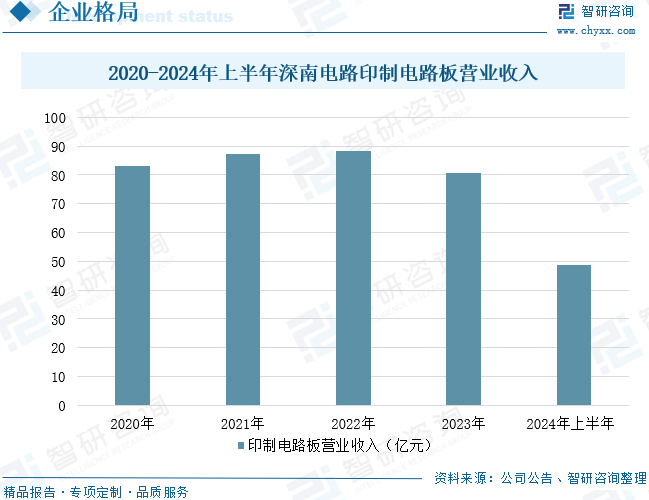 数据显示,2024年上半年,深南电路印制电路板营业收入为48.55亿元,同比增长25.06%。