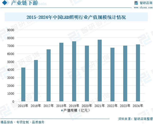 PCB铝基板被广泛应用于LED照明行业,作为LED光源导电导热的主板。LED在工作时会产生大量热量,若不能及时散热,会导致光效下降和寿命缩短。铝基板的高导热性能够迅速将热量传导到散热器或外壳,确保LED在适宜温度下运行,从而提升光效和延长使用寿命。数据显示,2015-2023年,中国LED照明行业整体产值规模呈现先上升触顶,而后波动震荡趋势。2021年,受国内经济持续复苏及出口转移替代效应持续,全年LED照明行业产值规模达到7773亿元的历史高点,同比增长10.8%。2022年,受宏观经济增长放缓及出口效应较弱的影响,LED照明行业产值规模为6750亿元,同比下降13.16%。2023年中国LED照明产值规模有所回升,达到7012亿元,预计2024年LED照明产值规模将达到7169亿元。随着LED照明行业的持续发展,PCB铝基板的市场需求也将保持增长态势。